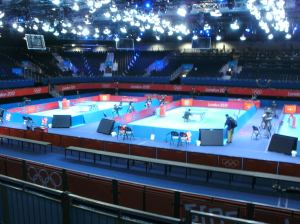 My second shift was due to start at 06:45 so it was the 05:14 train from Guildford this morning. Gulp, that took some effort to get up and get to the station at four thirty am. The same trouble the night before, getting to sleep knowing you are getting up that early stops blissful slumber from creeping in. But the journey went smoothly, this time I went to right station and got off at Custom House for the Excel, through security and off to the briefing to see what my job was for the day, and it was a plum!  I was in the team showing people to their seats in the Table Tennis competition and generally assisting with getting the public sorted out and settled for the games of which there are four being played simultaneously.