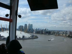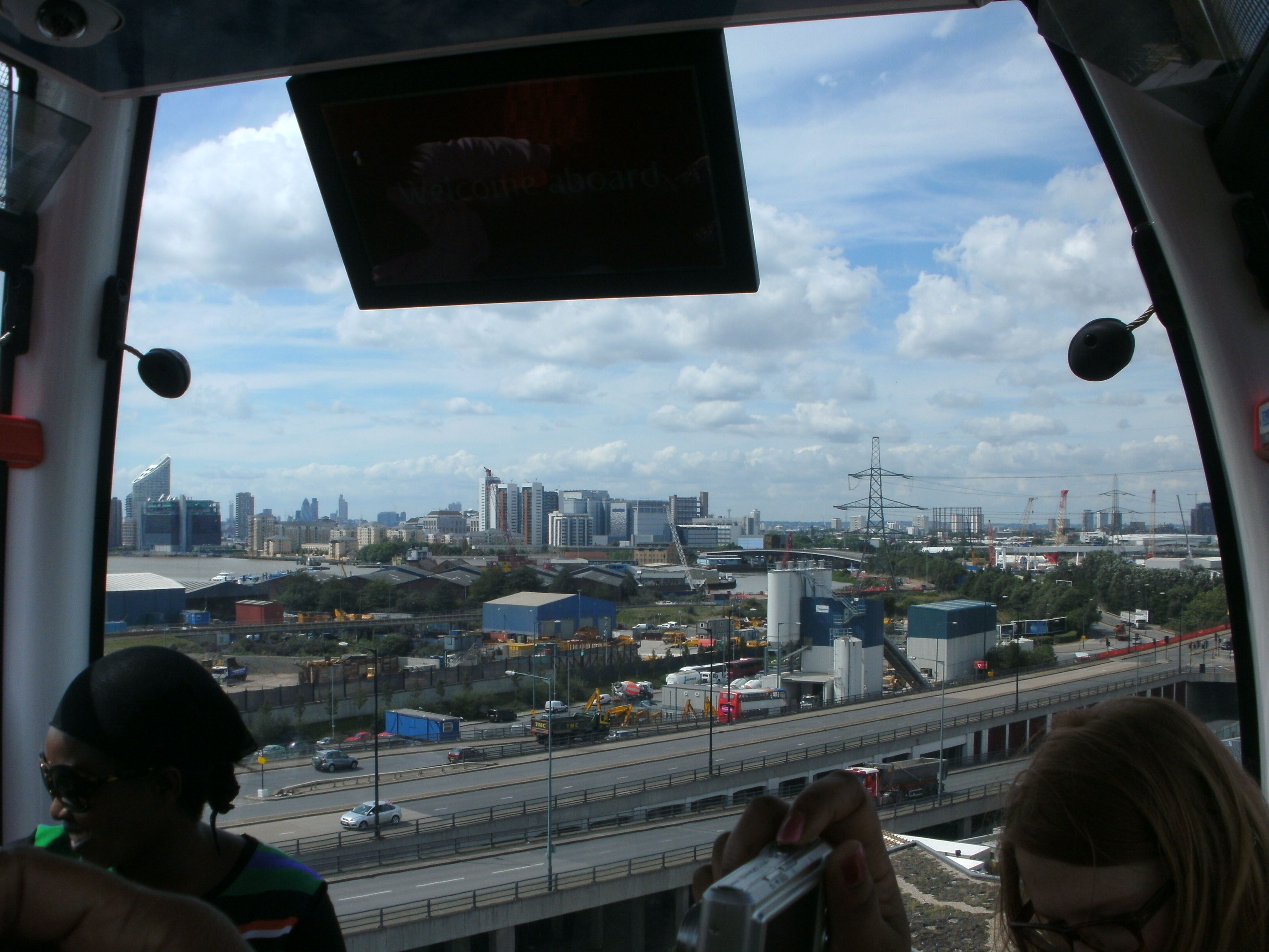 The Excel is one of the most successful exhibition and event venues in London, and to expand its access, someone decided to build a cable car highway to join the Excel with the what is now called the North Greenwich Arena (NGA), previously the O2, and before that just the Dome. For something that was a temporary ‘tent’ in 2000, appearing in a Bond film and others, and was meant to last quite a short period, the NGA has lasted well and is now presumably a permanent building. The cable car was built quite quickly and was sponsored and paid for mainly by the Emirates airline and is quite rightly called the Emirates Cable Car. For the princely sum of £3.20 (with Oyster Travel Card) you get a 5-8 minute ride across the Royal Victoria dock to adjacent to the NGA. Here are some of the photos I took on the journey: