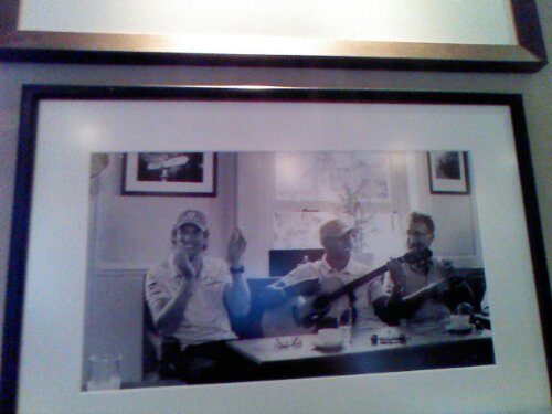 So back to reality and today, Fran and I went to the best sewing material shop in the area, and while she chose some cloth, I went next door and had a pint in The William Bray, a pub frequented by members of the McLaren F1 team as can be seen from the photo below, which is where I was sat. Nice pint too.