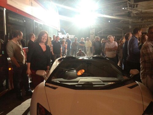 But I digress, what is it about this show that divides opinion so much but is also consistently voted one of the BBC’s top programmes? A friend of Charlotte’s works next door to where the show is recorded, and gets (free) tickets for friends and family. So because no-one else wanted them, she invited me to accompany her to watch TG being recorded. Luckily it’s quite near to where we live, but some people have driven the length of the country to get there. There’s a lot of standing about; for at least 4 hours, so it gets to your legs. The layout is pretty much as you see it on TV, but for each setup, the crew have to move the audience of about 1000 people so that they stand around the presenters next item. Its a bit like herding cats, but they get there in the end. The recording proceeds more or less in the order it appears in the final transmission: we see the inserts as they go along with Clarkson and co presumably slipping out for a ciggie. They use no Autocue, and rehearse the show in the morning. They’ve been doing it for so long, they have got it down pat. Clarkson is obviously the lead, but the other two Richard Hammond and James May are excellent foils.