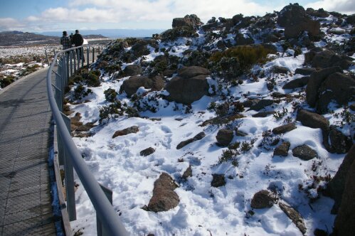 If you had said a year ago that I would be visiting Tasmania within a year, I’d have said yeah right, in the vernacular. But there we were queuing up at Melbourne’s Tullamarine airport for the Jetstar flight to Hobart. It was a very early morning flight and it was very early doors out of the flat to get to the airport. Just over an hour later, we landed, picked up the hire car and I had my first taste of driving in Australia, albeit Tasmania, but its no different. After breakfast in a Salamanca Market (of which more later) cafe, we straight away went up to the top of Mt Wellington, which is 1270 mtrs. The drive up was ‘interesting’, and the climb made our ears pop. From the 26° in Sydney a week or so previously, we were now subject to snow and 5°.