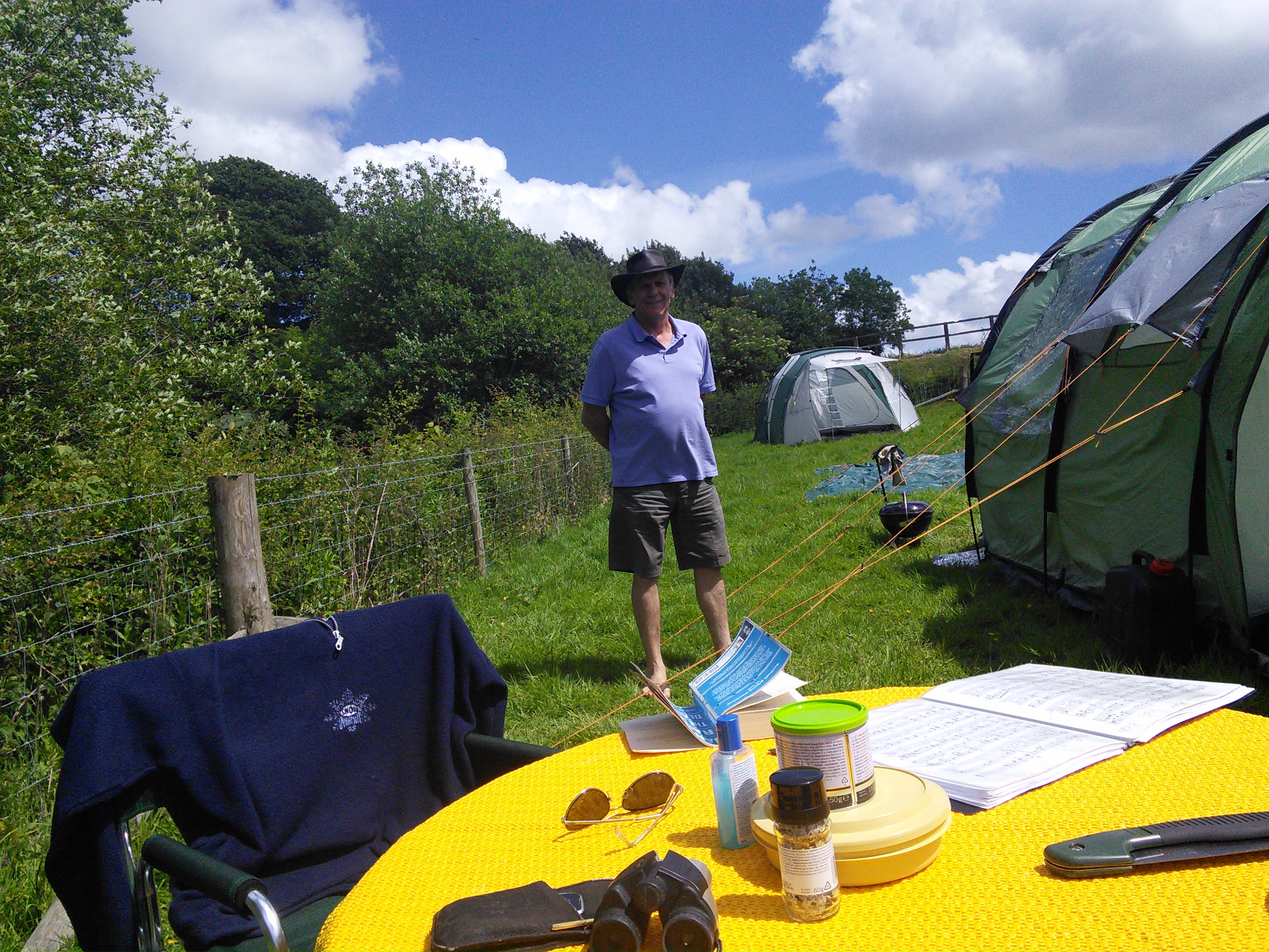 Then it’s the usual turn and turn about for songs, some old some new some self-penned (which I did) and very good renditions all round. Some of the talent on show is just awesome; Britains Got Talent? Pah, not a patch on Ruffits-in-the-field! Unfortunately the rain started in the early hours and turned into a torrent, so by 2.00am everyone had more or less dispersed to sleep off the beer. The following morning the sun shone bright and cheerful, and stayed like it for the rest of the day and night: